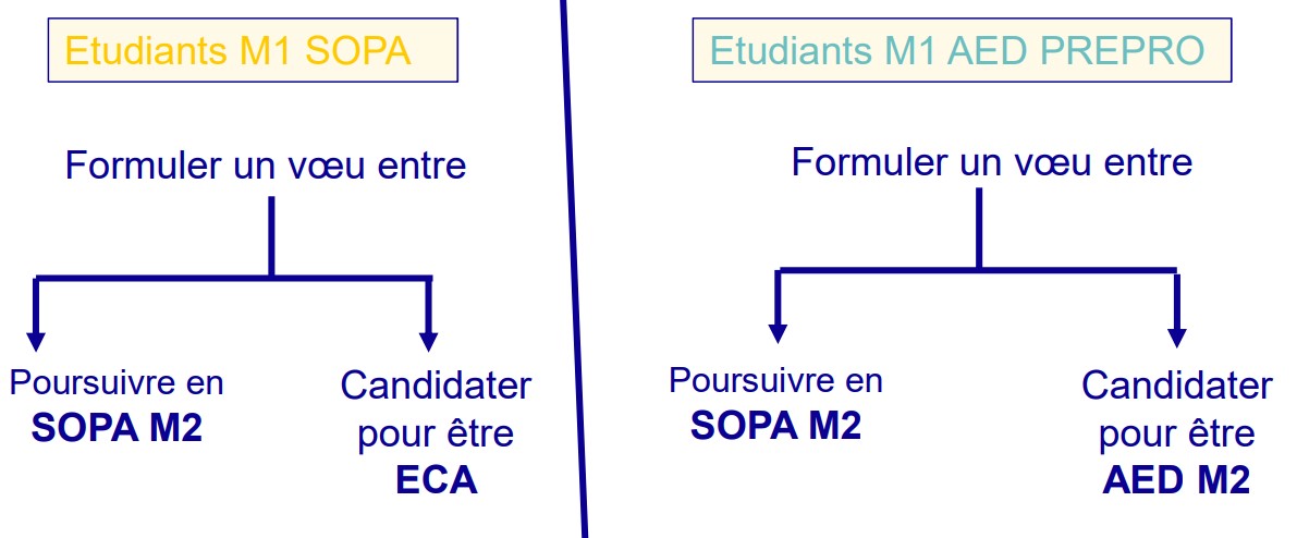 Si tu ne souhaites pas continuer en tant qu’AED-prépro en M2, tu seras basculé.e en stage d’observation et de pratique accompagnée (SOPA).